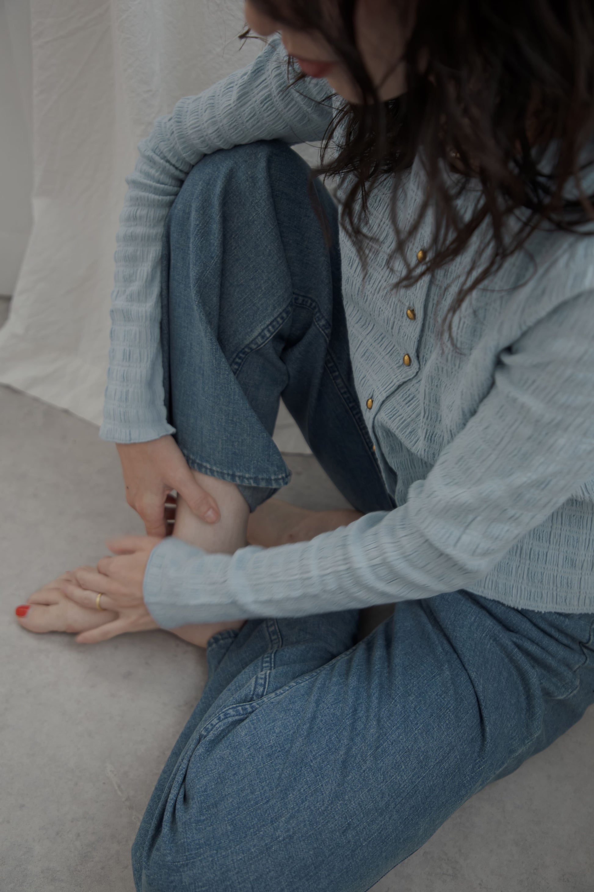 伸縮性のある生地で素肌に直接重ねていただいても着心地良く着ていただけます。