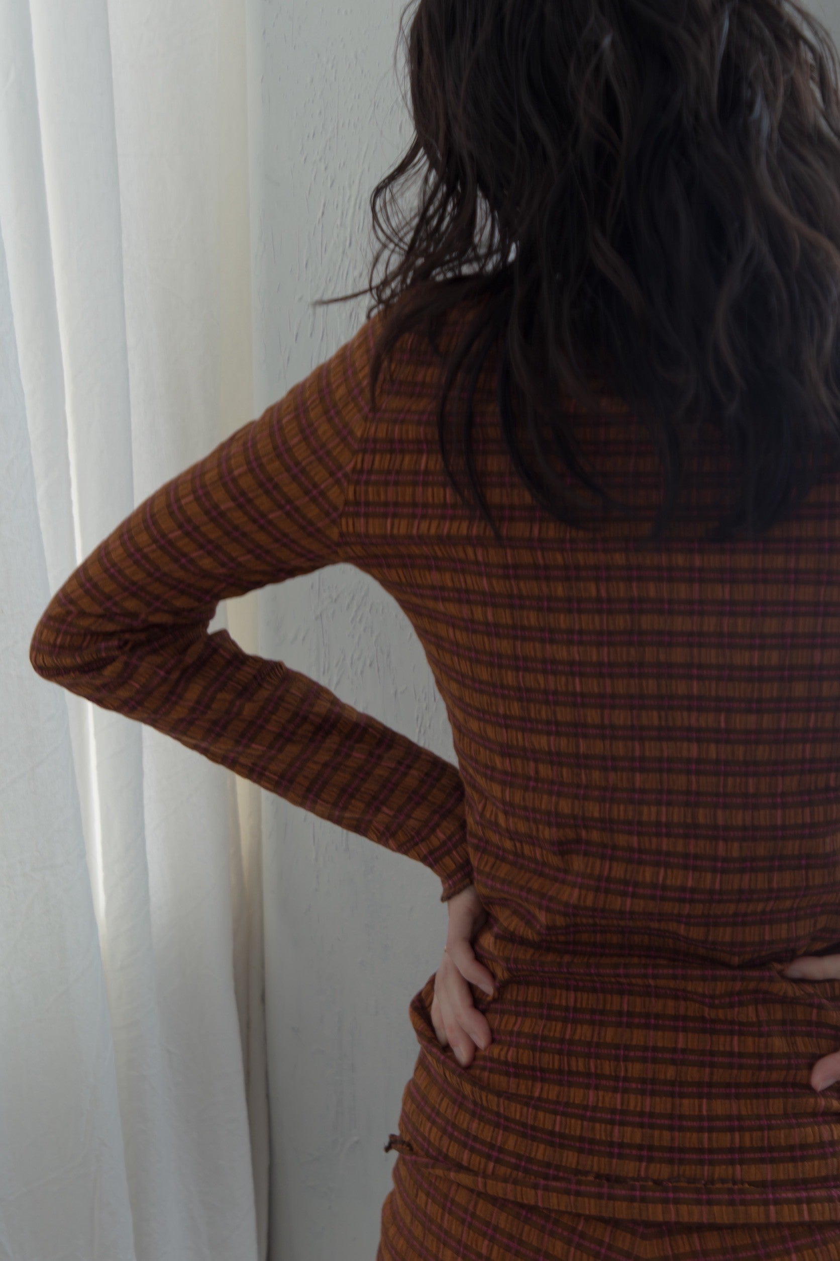 shirring check top(brown)