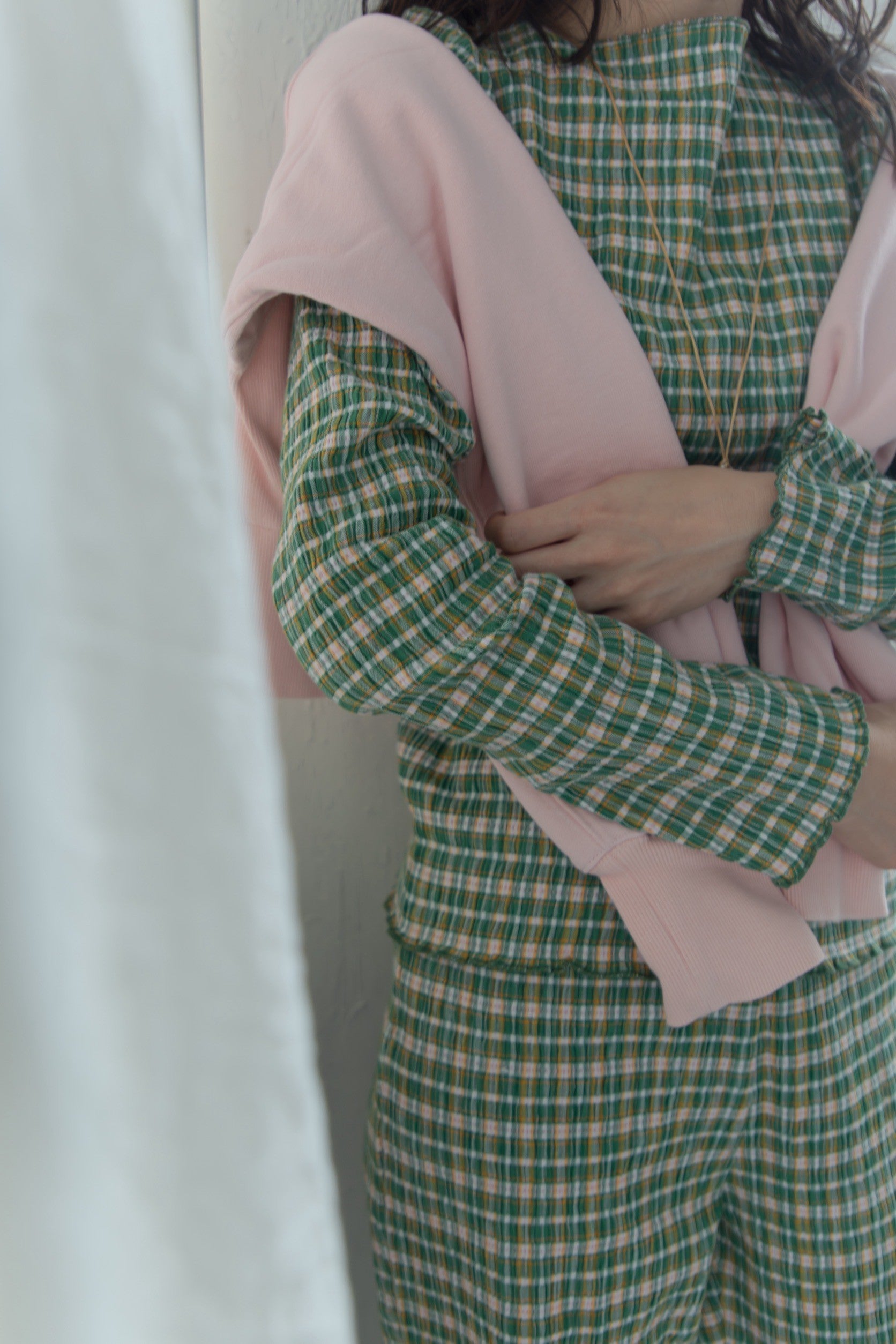 襟ぐりと袖口をメロウステッチで仕上げており、どんなコーデにも馴染みます。